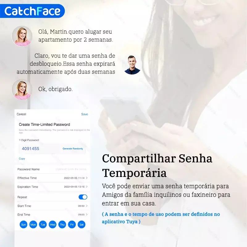 Controle pelo celular: gerencie acessos, receba notificações em tempo real e envie senhas temporárias via app.