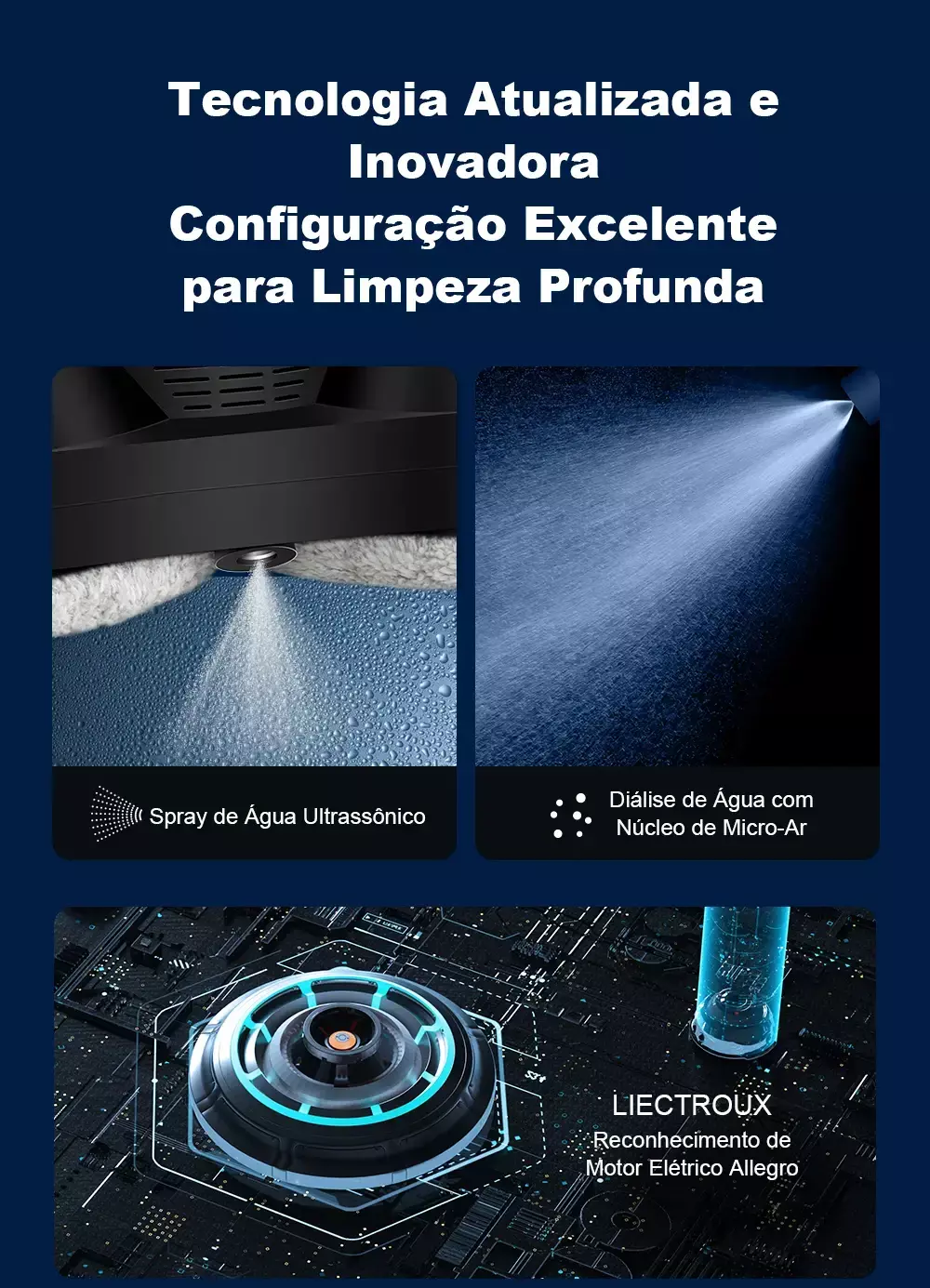 ✔️ Spray automático de água dupla face – limpeza mais rápida e uniforme.