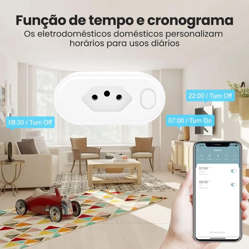 Função de temporização: programe horários para ligar ou desligar dispositivos automaticamente.